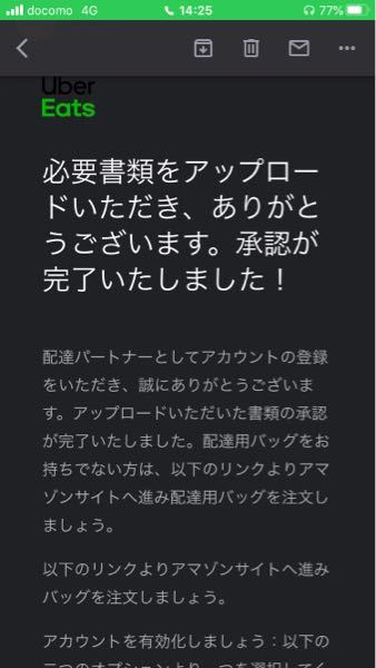 ウーバーイーツの承認完了メールが届かないのですが、今コロナの