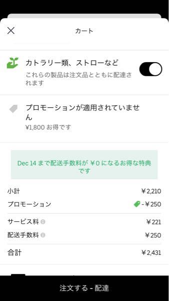 UberEATSでプロモーションコードを選択しているのに、注文画面に戻る