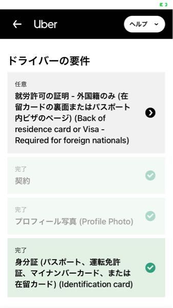 Uberドライバーについてです。1番下の身分証を何度提出しても写